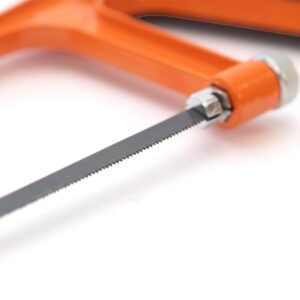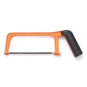 Eine kleine, aber leistungsstarke Bügelsäge für einfache Metallarbeiten im Haushalt. Mit ihrem 15 cm langen Sägeblatt gelangen Sie auch an schwer zugängliche Stellen, wo eine normale Säge unhandlich wäre. Der Griff ist stabil und sorgt für ein sicheres Gefühl in der Hand, während die Säge nur 78 Gramm wiegt – leicht zu handhaben, aber dennoch robust.