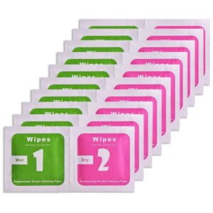 Die kleinen Doppelsets bestehen aus einem Reinigungstuch und einem Trockentuch in der Größe 5×5 cm. Eine Bestellung enthalt 10 Sets.