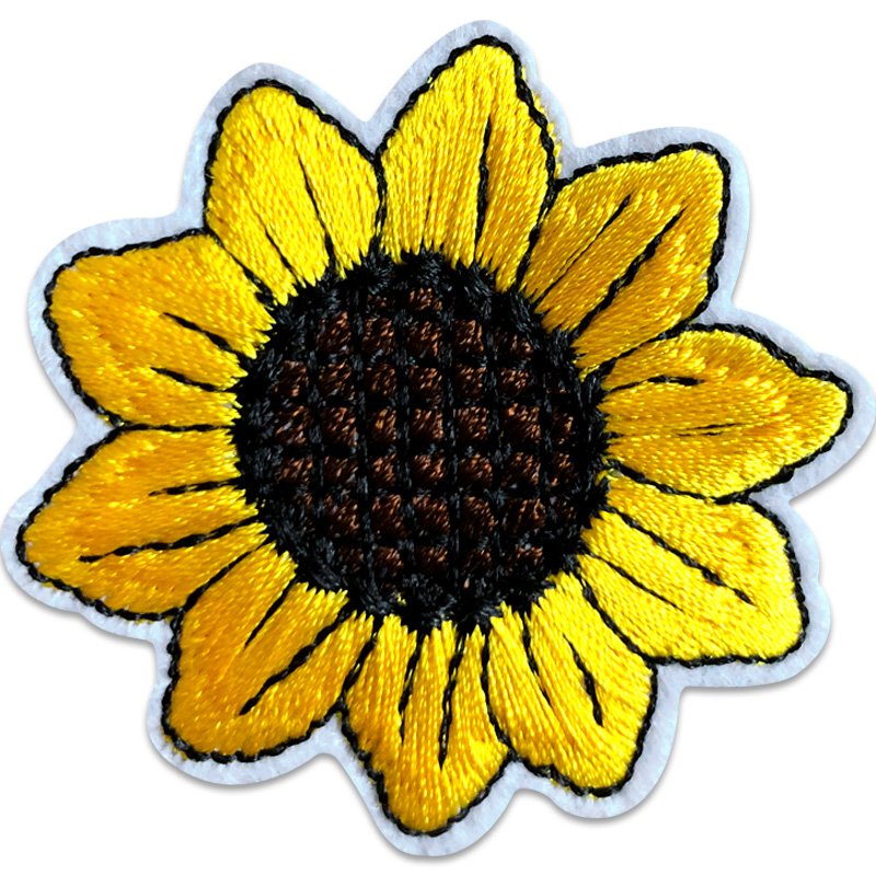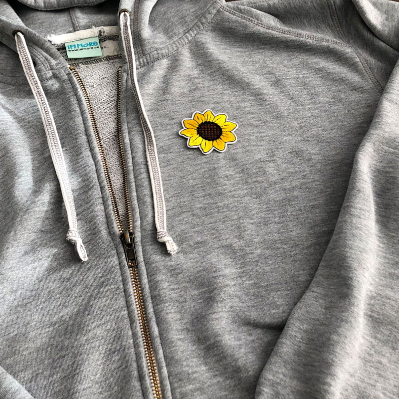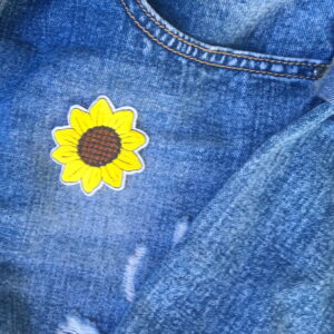 Das Bügelbild für den Sonnenblumen-Fan. Das Bügelbild ist ungefähr 5 cm groß und zum Aufbügeln auf Kleidung und andere Stoffe geeignet.