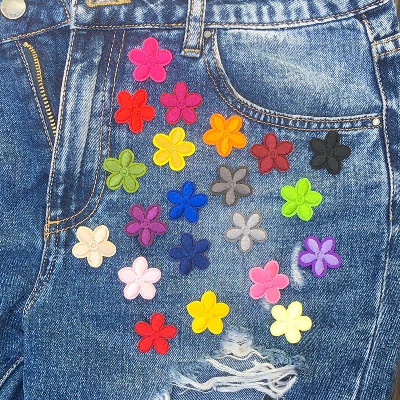 Beliebtes Paket mit kleinen Blumen in mehreren Farben. Die Größe der Blumen beträgt 3 cm. Sie sind zum Aufbügeln auf Kleidung oder Mützen sehr gut geeignet.