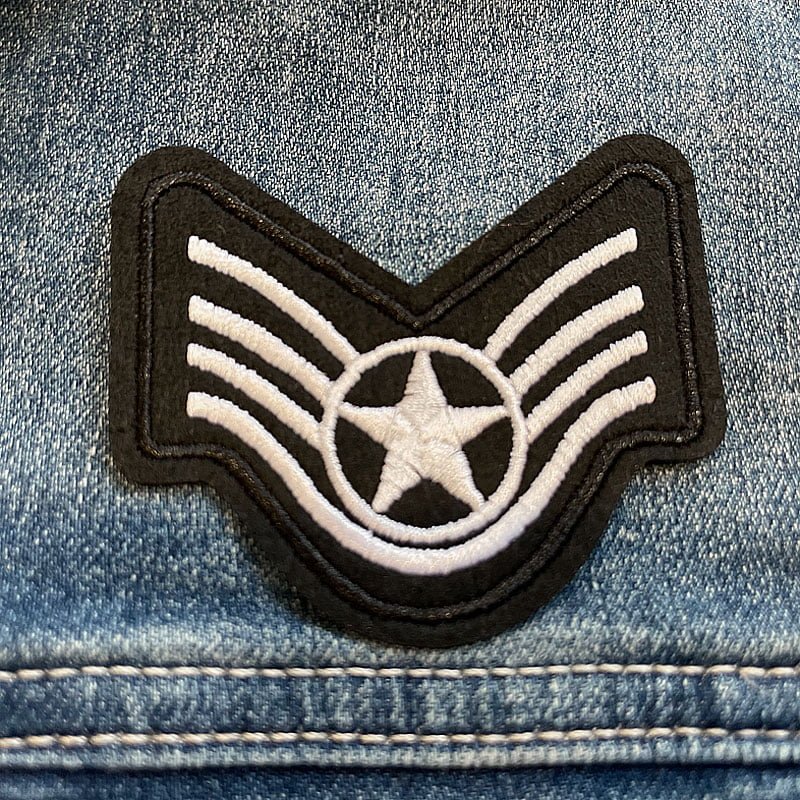 Hier haben wir ein Bügelbild in der Form eines Emblems. Es hat die Größe 6,4 x 5,3 cm und eine mit Schmelzleim beschichtete Rückseite zum einfachen Aufbügeln. Das Bild ist zum Flicken von kleineren Löchern geeignet, oder auch als dekoratives Detail zum Verschönern von Kleidung oder Taschen.
