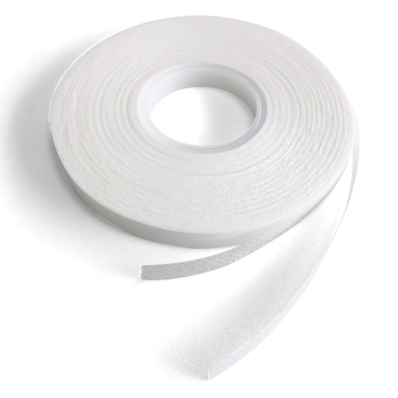 Transparentes, doppelseitiges Textilklebeband ist eine einfache und pfiffige Alternative zu Stecknadeln, um zwei Stoffe zum Nähen zu verbinden. Das Textilklebeband verbindet Nähte, Reißverschlüsse, Gardinen, Applikationen und auch Spitze. Das Band löst sich beim Waschen auf.