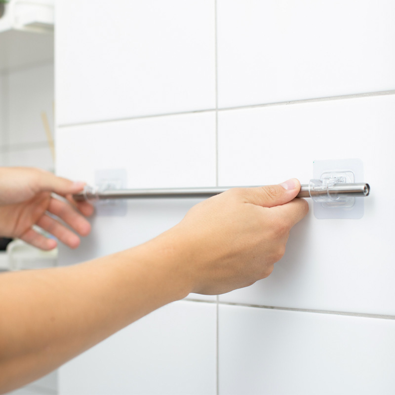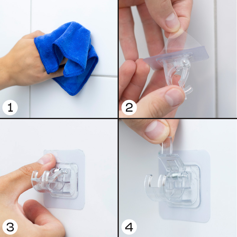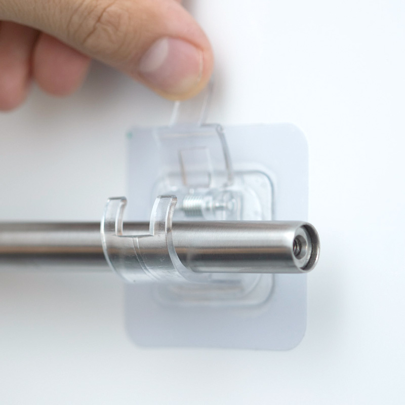 Die selbstklebende Oberfläche ist 5 x 5 cm groß, und hält ein Gewicht von 2,5 kg aus. Der Durchmesser der aufzuhängenden Stange sollte nicht mehr als 2 cm betragen. Eine Bestellung enthält 1 Paar Stangen (2 Stück).