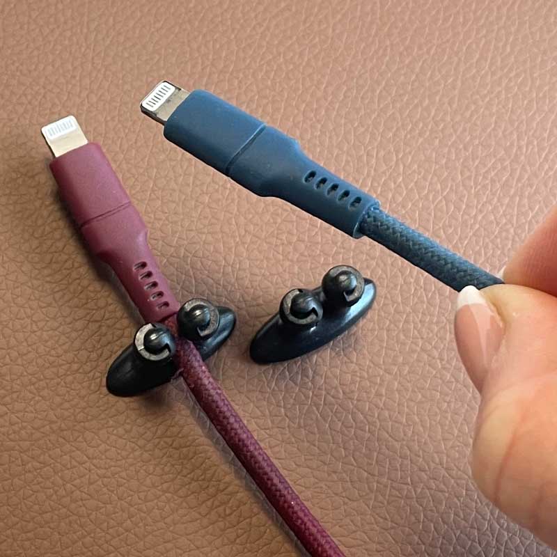 Hübsche kleine Kabelhalter mit selbstklebender Rückseite fürs Auto oder den Wohnwagen. Oberfläche reinigen, Trägerfolie ablösen und festkleben. Eine Bestellung enthält 8 Stück in einer wiederverschließbaren Tüte.