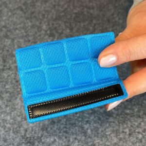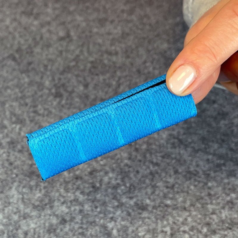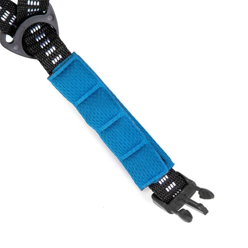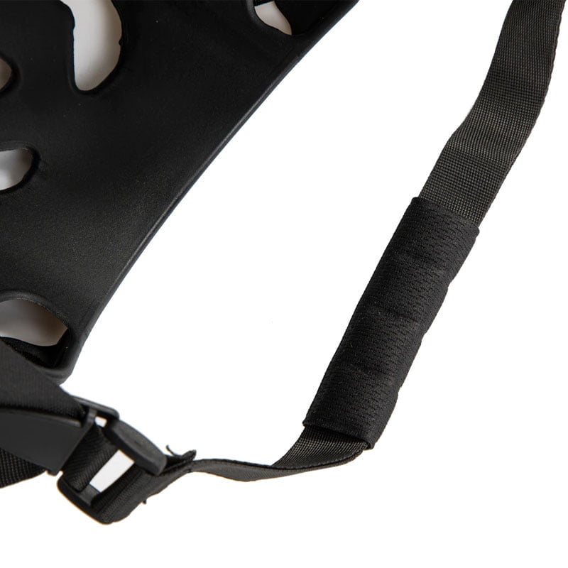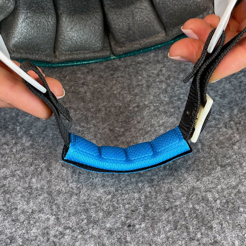 Mit einem Klettverschluss rundum lässt sich das Polster einfach anbringen. Es ist etwa 7,5 cm breit – ideal, um Druckstellen zu vermeiden und den Tragekomfort im Kinnbereich spürbar zu verbessern.