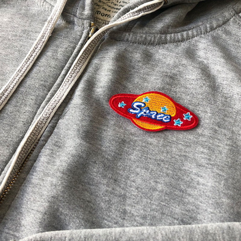 Der Planet mit dem Schriftzeichen Space hat eine Größe von 7,1 x 3,5 cm und ist ganz leicht aufzubügeln. Wie das mit dem Bügeleisen geht, zeigt dir die Bügelanleitung, die beim Kauf natürlich dabei ist.