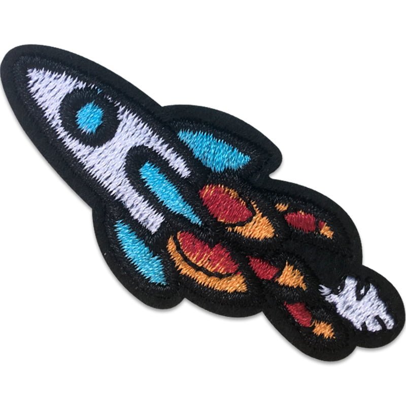 Kinderkleidung bekommt schnell Flecken und Löcher. Mit dieser Rakete mit einer Größe von 6,2 x 3 cm können Löcher und Flecken ganz leicht versteckt werden. _ einfach über Loch oder Fleck bügeln und die Lebensdauer des Kleidungsstücks verlängern. Auch für andere Stoffe wie Mützen oder Taschen geeignet.