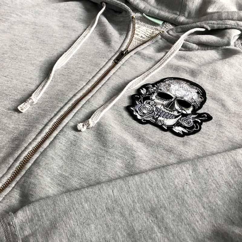 Diese Rosen mit Totenkopf sind ein gesticktes Bild für Kleidung und mehr. Roses of Death ist zum Aufbügeln auf Klamotten aber auch andere Stoffgegenstände geeignet. Dieses Bild hat eine ungefähre Größe von 9,8 x 10 cm. Beim Kauf dabei ist eine einfache Bügelanleitung, die zeigt, wie leicht das Aufbügeln geht.