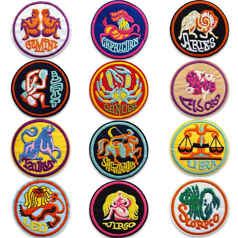 Hier kannst du dein Sternzeichen als Bügelbild bestellen. Gestickte Bilder mit einem Durchmesser von 6,8 cm. Die Namen der Sternzeichen sind jedoch auf Englisch.