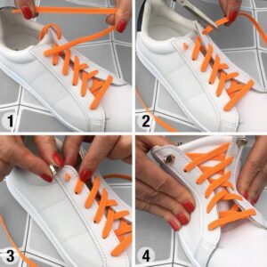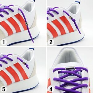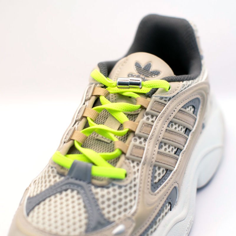 Verschiedene Stopper-Modelle für elastische Schnürsenkel. Das eine ist ein Zylinder-Schraub-Stopper, und das andere ein Clip-Schnürsenkelstopper, der ans Ende der Schnürsenkel angeclips wird.