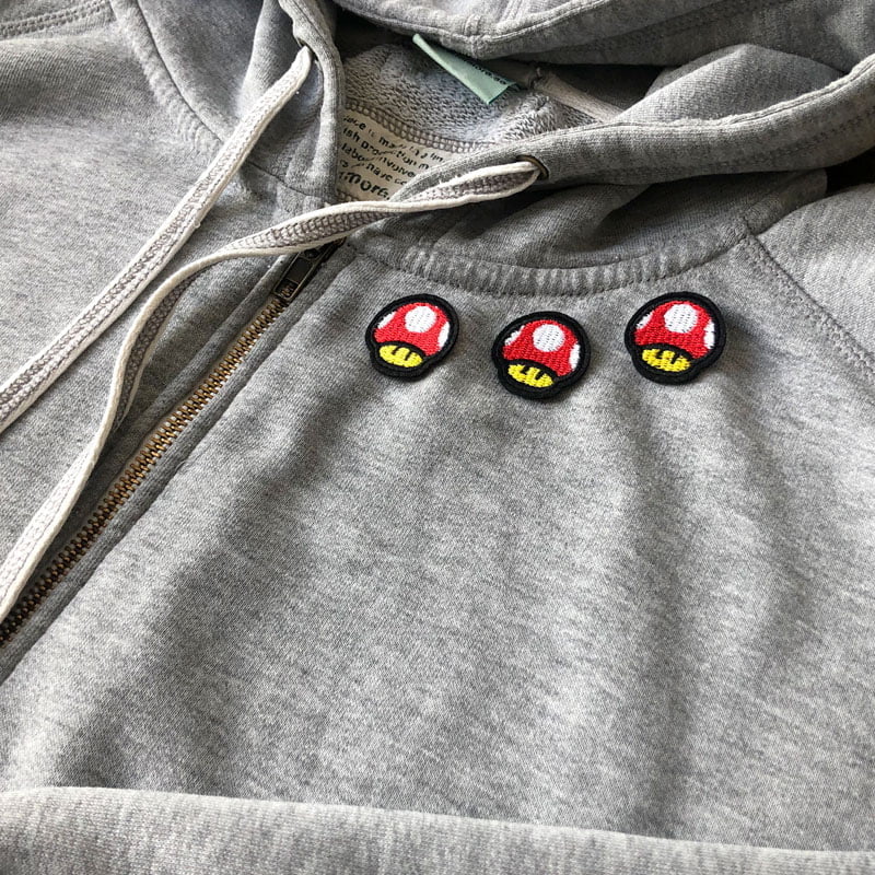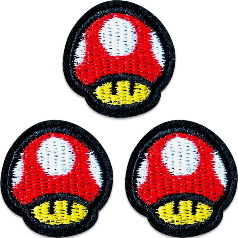Ein Dreier-Pack süße Toad-Köpfe von Super Maria. Der Pilz har eine Größe von 3 cm, und ist zum Aufbügeln. Dei Form des Kopfes macht das Bild perfekt zum Flicken, Dekorieren und markieren von Kleidungstücken. Eine Bügelanleitung ist auch beim Kauf dabei.