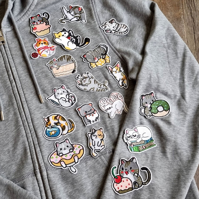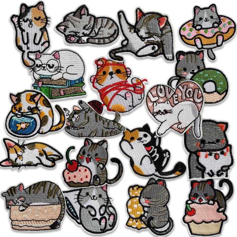 Bügelbilder im Paket, mit vielen verschiedenen Katzenmotiven. Die Katzen können zum Verschönern oder zum Flicken von verschiedenen Stoffen benutzt werden, z.B. Stoffbeutel, Rucksäcker, Mützen, Pullover oder Baseball-Caps.