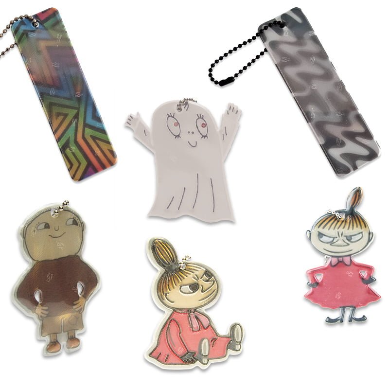Weiche Reflektoren zum an die Tasche oder an die Jacke hängen. Schöne Motive mit Figuren aus Büchern, und tolle Muster. Verschiedene Größen.